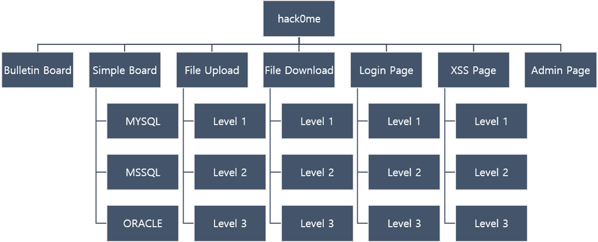MYSQL, MSSQL, ORACLE 등 여러 데이터베이스로 연결된 홈페이지에서 단계별로 해킹을 할 수 있는 환경을 제작하고자 합니다.