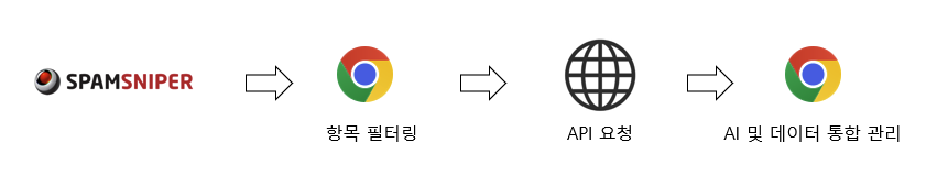 이메일 스팸 진단 도구는 사용자에게 전달된 이메일들을 대상으로 발신자 IP를 확인하고 외부 API와 AI를 활용해 정상으로 분류된 메일 중에서도 피싱메일을 식별하는 역할을 수행합니다.